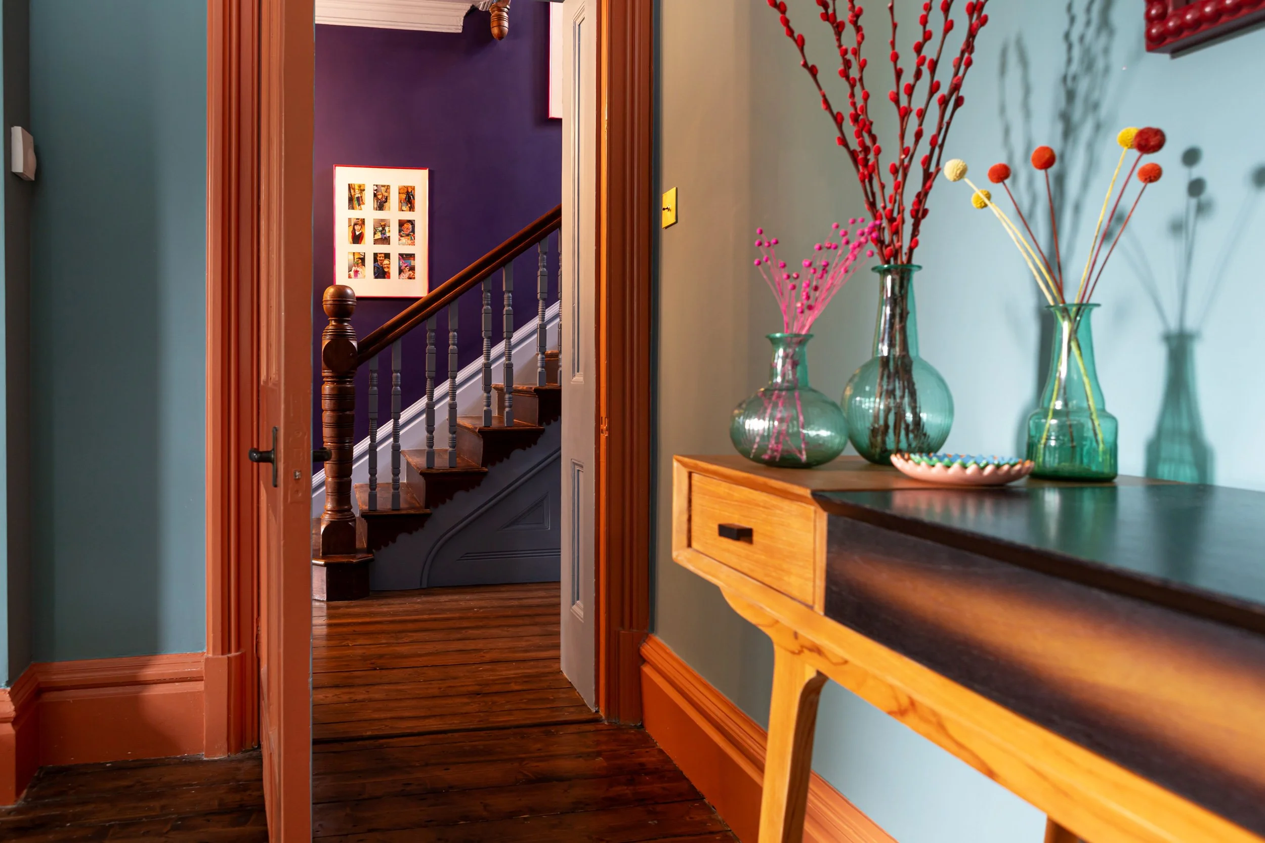 The colour palette was inspired by the bold colours often found in nature, with rich greens and burnt oranges which were carried through in wall colour, playful tiles and all core furniture .